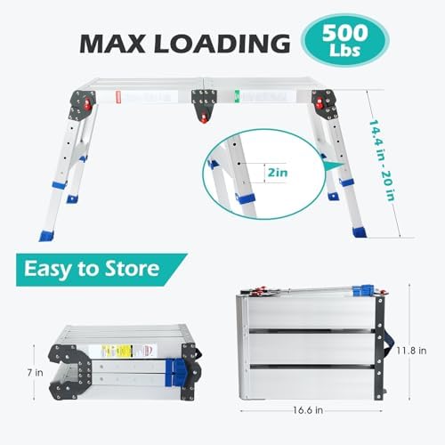 Introducing the LEADALLWAY Work Platform, your ultimate solution for reaching new heights with ease and safety. This versatile step stool features a robust aluminum construction, ensuring durability while maintaining a lightweight design. Measuring 33 inches in length, 12 inches in width, and 20 inches in height, it provides a stable and spacious platform for various tasks around the home or workplace.